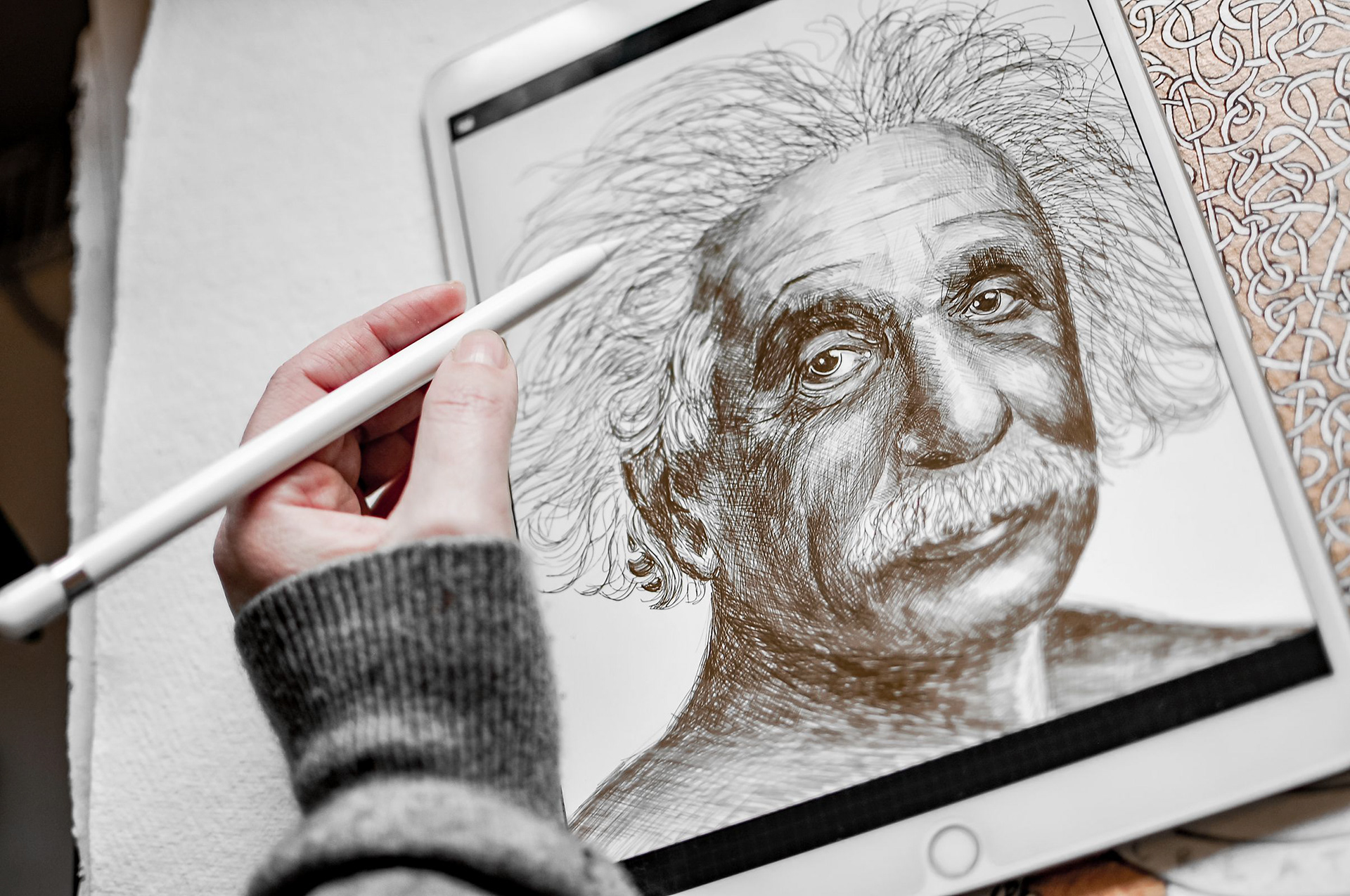 Portraits of Dali, Einstain, Picasso made by ipadPRO in pencil technics.